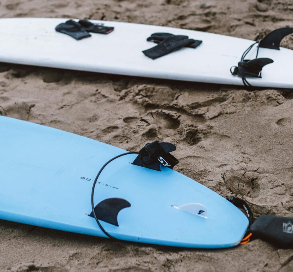 We’d suggest a bathing suit, shortie (2mm) and full wetsuit (2/3mm) in the warmer months – full wetsuits (2/3, 3/4mm) and boots for long/early/late sessions in the colder months.